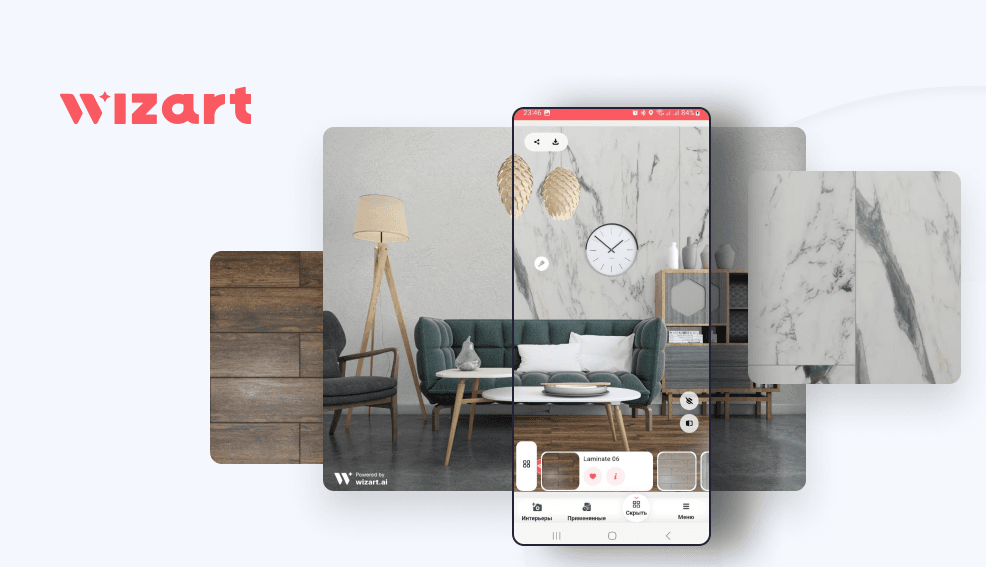 Wizart's AR visualizer empowers manufacturers and retailers of finishing materials to provide their clients with an exceptional visualization experience. Through cutting-edge technology, it seamlessly blends the physical and virtual realms, allowing users to explore a wide range of design possibilities.