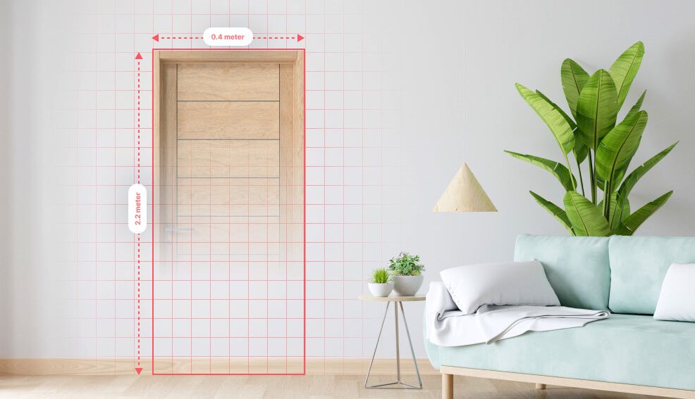 Using our Object Detection In Indoor Scenes algorithms, we can obtain information on the 3D dimensions (real-world dimensions) and positions of the door in the scene in the photo. For clarity, we will consider the situation when there is already a door in the interior: